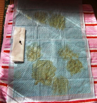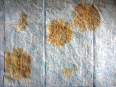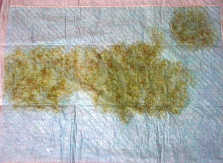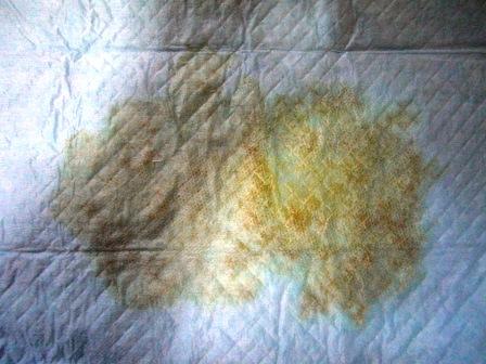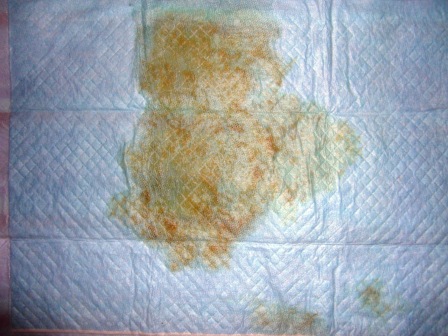 食べさせたのでオレンジっぽい色のオシッコです。