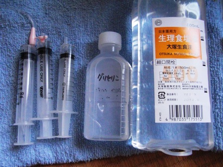 グリセリン・生理食塩水と頂きました。